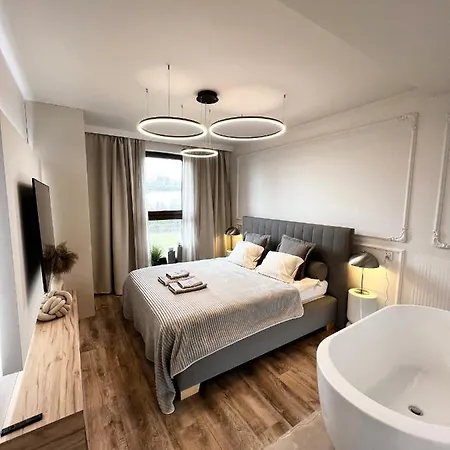 This beachfront accommodation lies about 10 minutes' drive from Plaza Miejska and a 10-minute ride from Lake Drweca. The city centre is just 2 km away and Szczytno-Szymany International airport is 105 km from the apartment.